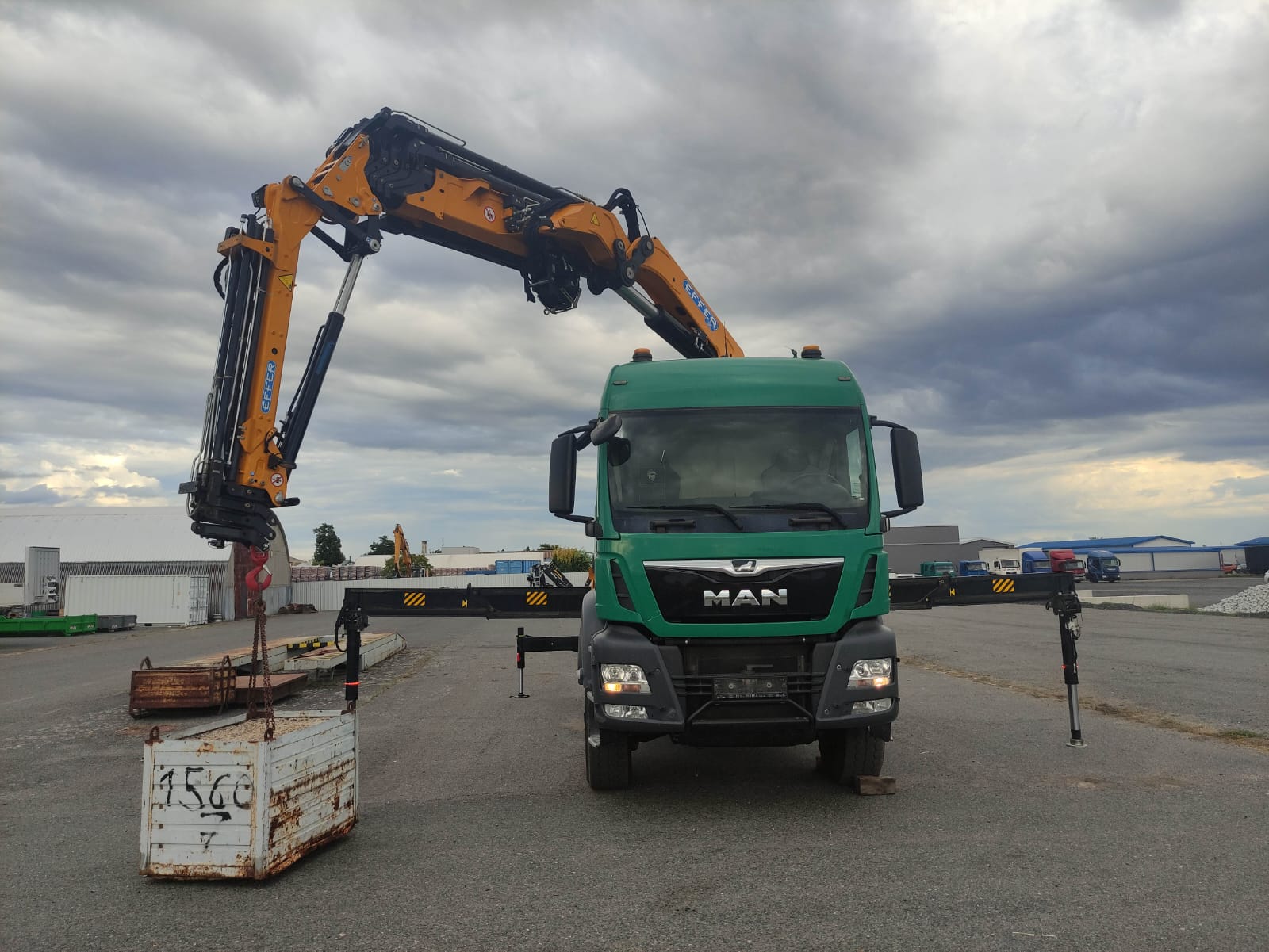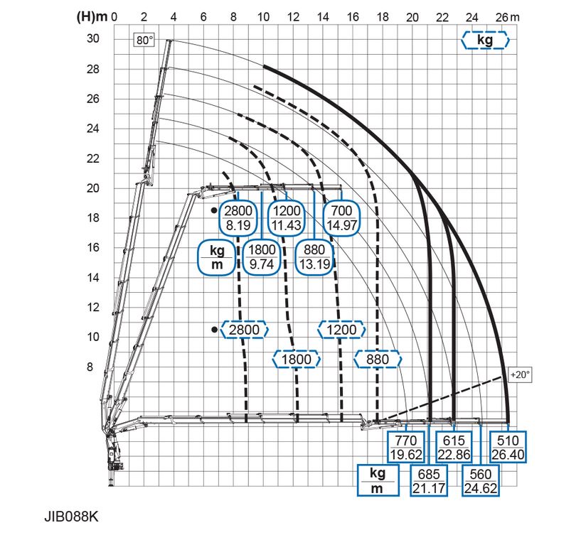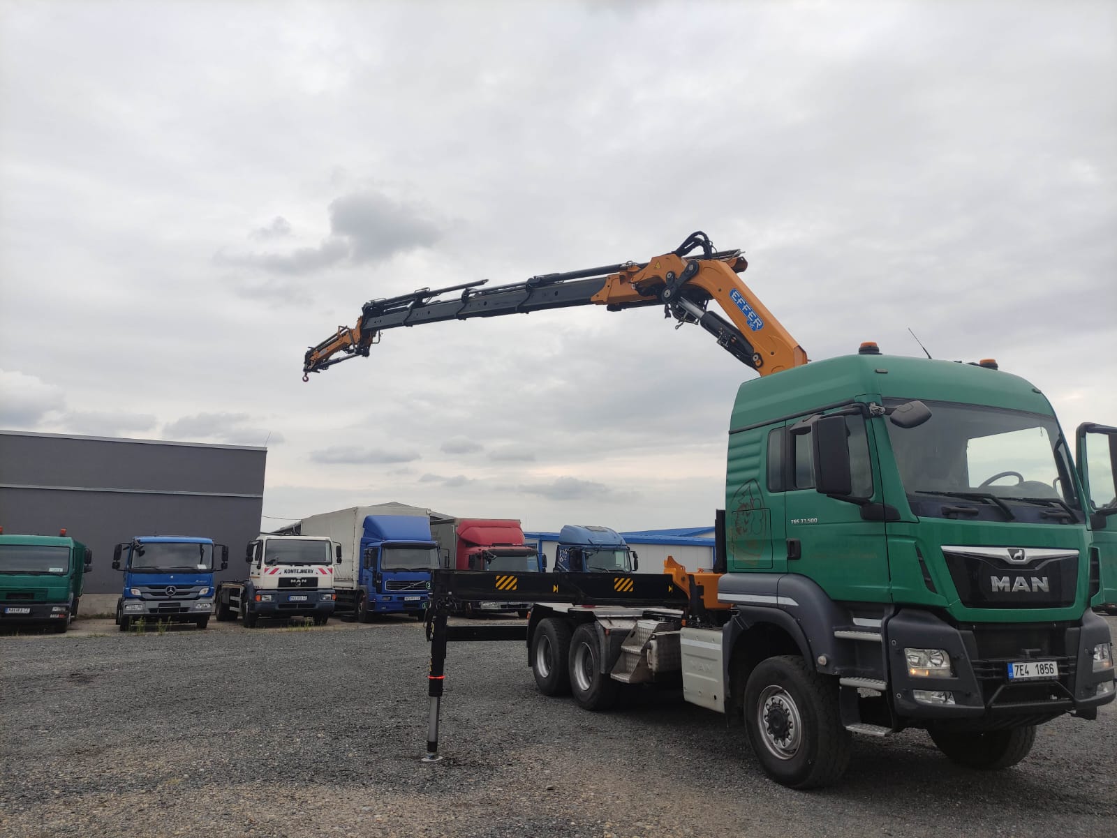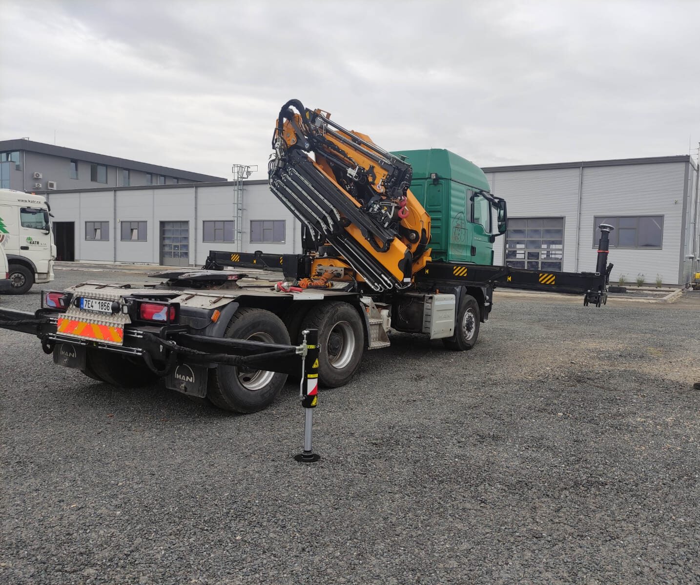 Effer 395 6S 4S. Jeřáb s nekonečnou otočí, vodorovný dosah 26,5m, nosnost 510 kg. Výškový dosah 30 m. Jeřáb s dálkovým ovládáním, JIB, naviják 2,5 t.