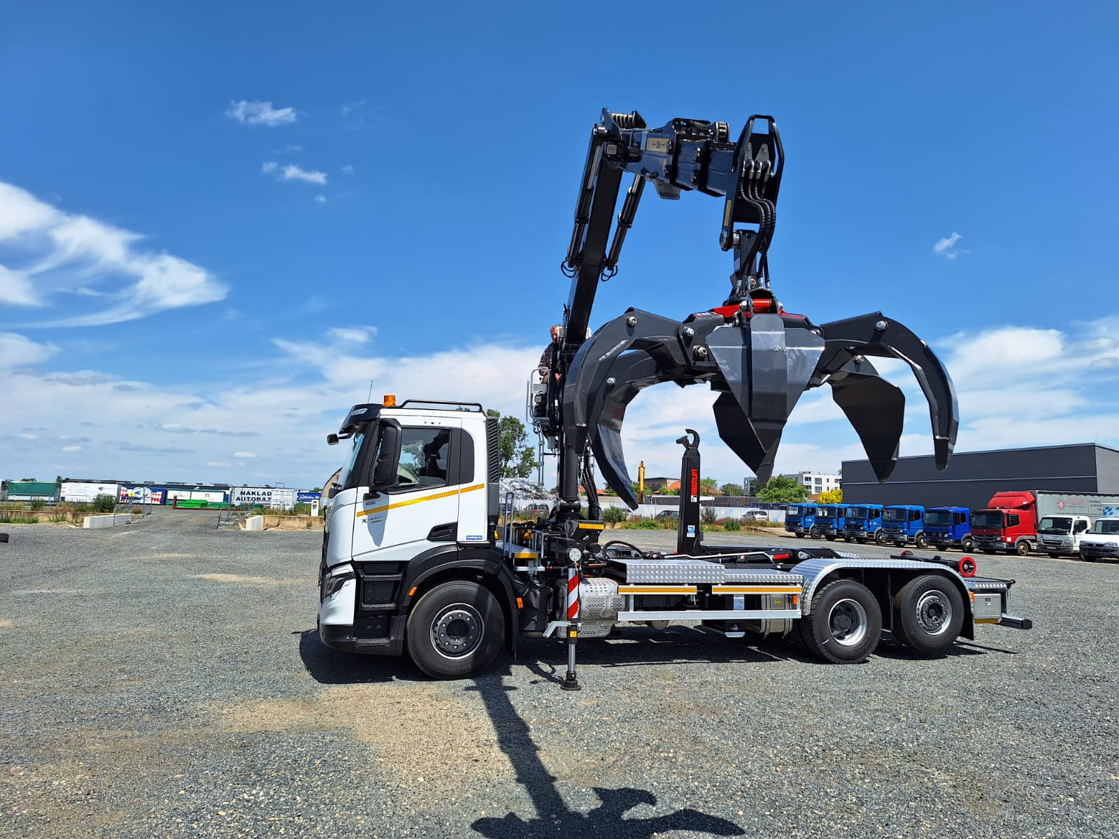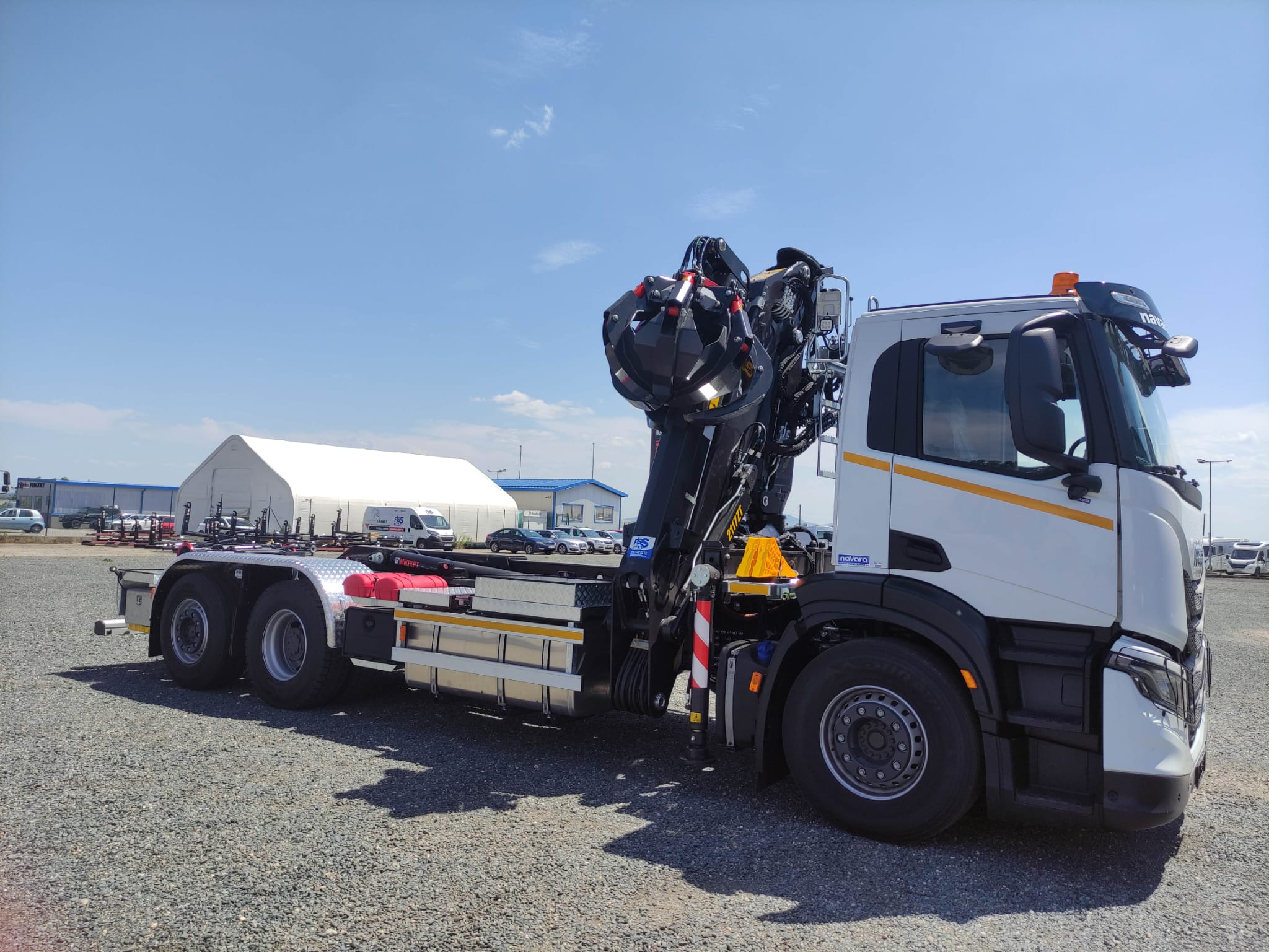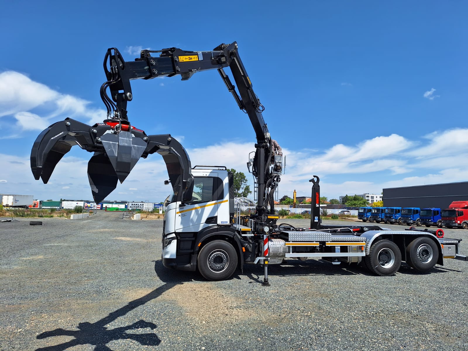 Realizace IVECO X-WAY 6X2 s nosičem kontejnerů MULTILIFT ULTIMA 21S56 pro kontejnery max délky 7m. Jeřáb KESLA 2117ZT 94, výbava Recykling Kit, hydraulický dosah 9,4m a polypový drapák Ferrari 254/6 vyosený.