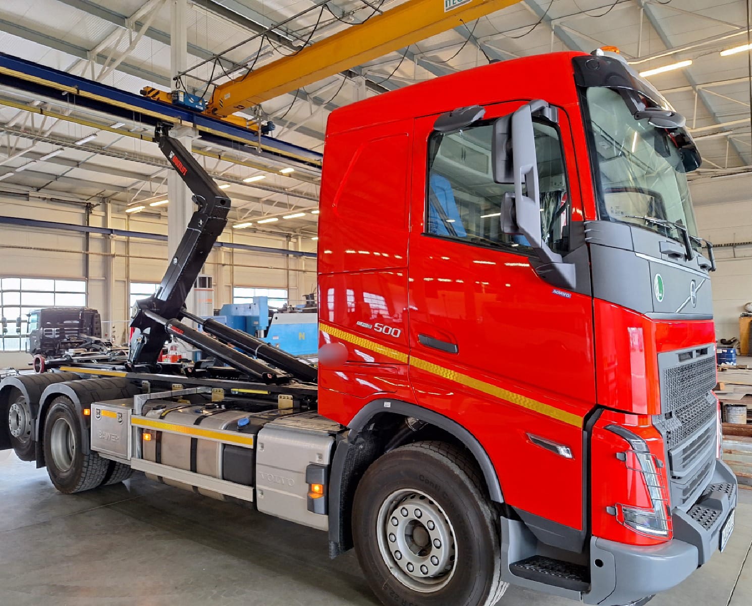 Nosič kontejnerů MULTILIFT ULTIMA 21S59 s elektrickým ovladačem 2. generace v kabině. Nosič vybavený funkcí „Automatická sekvence“ zdvojená funkce natažení a složení kontejneru jedním pohybem Joysticku ovladače, rychloposuvem, zpomalením pohybu v krajních polohách, nouzovým ovládáním na hlavním rozvaděči.