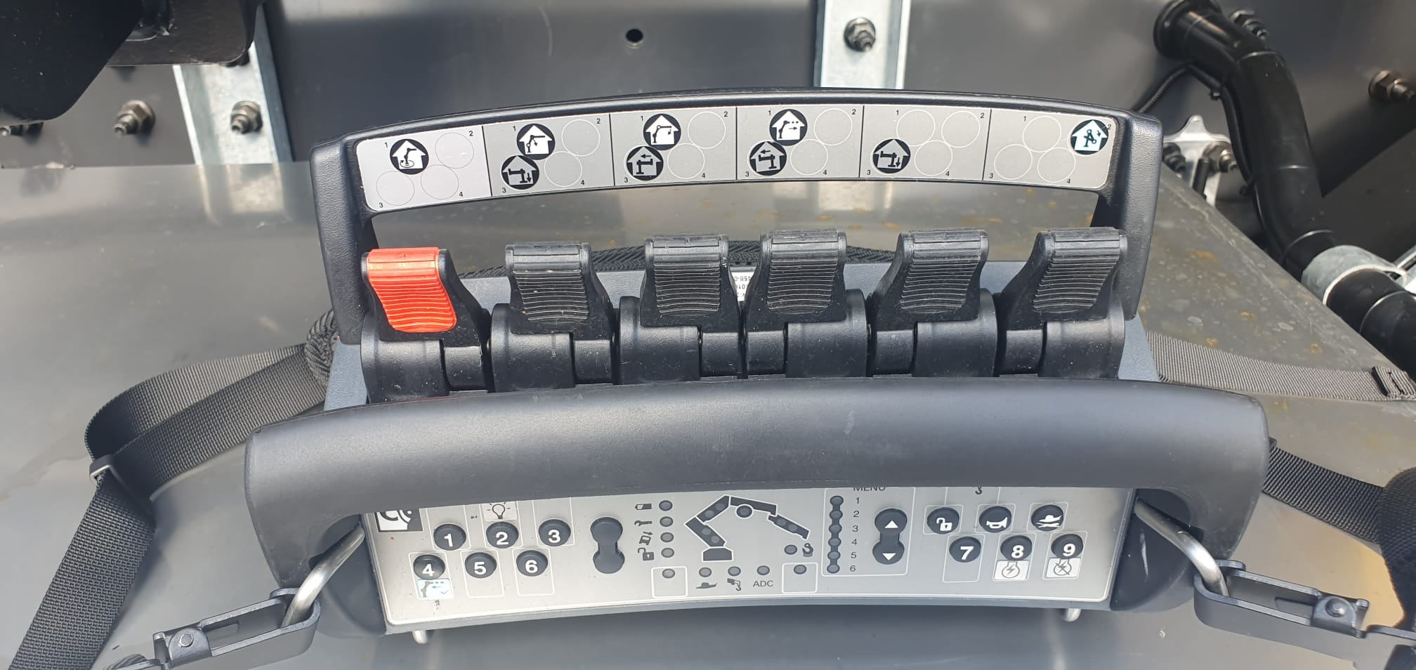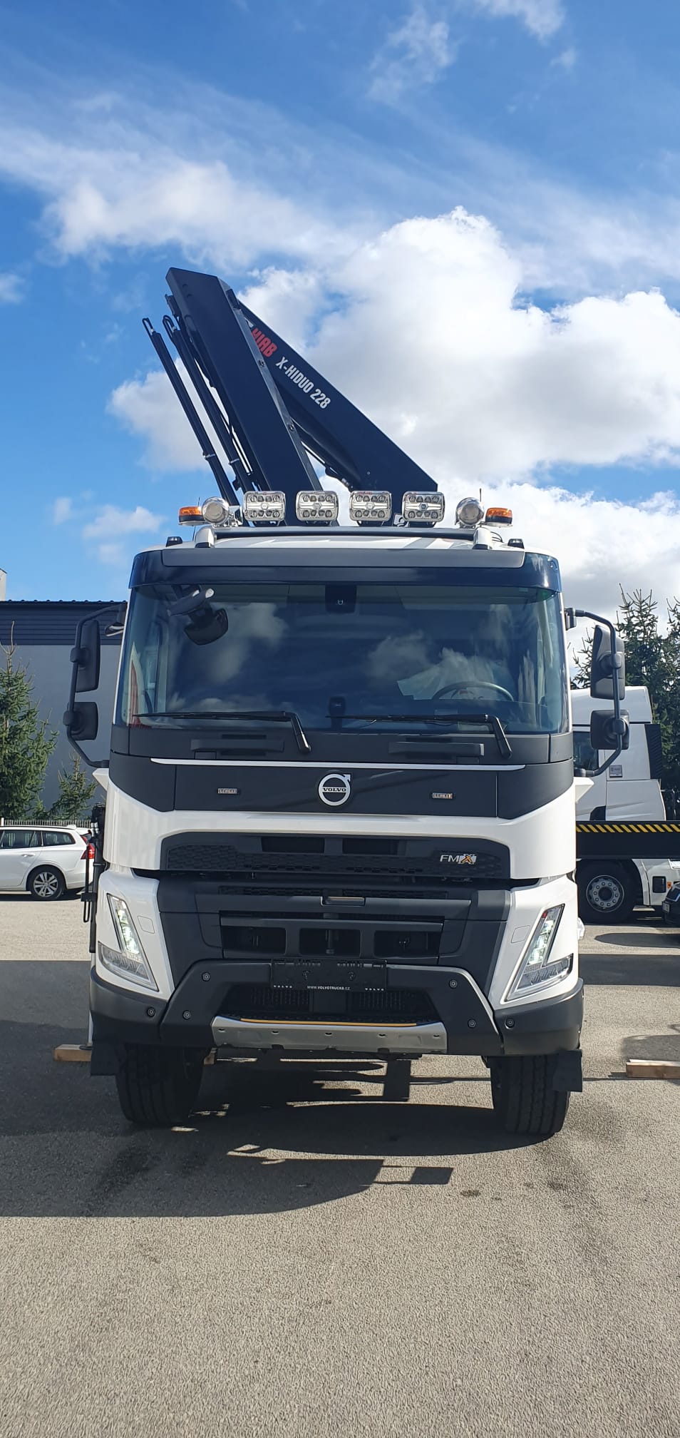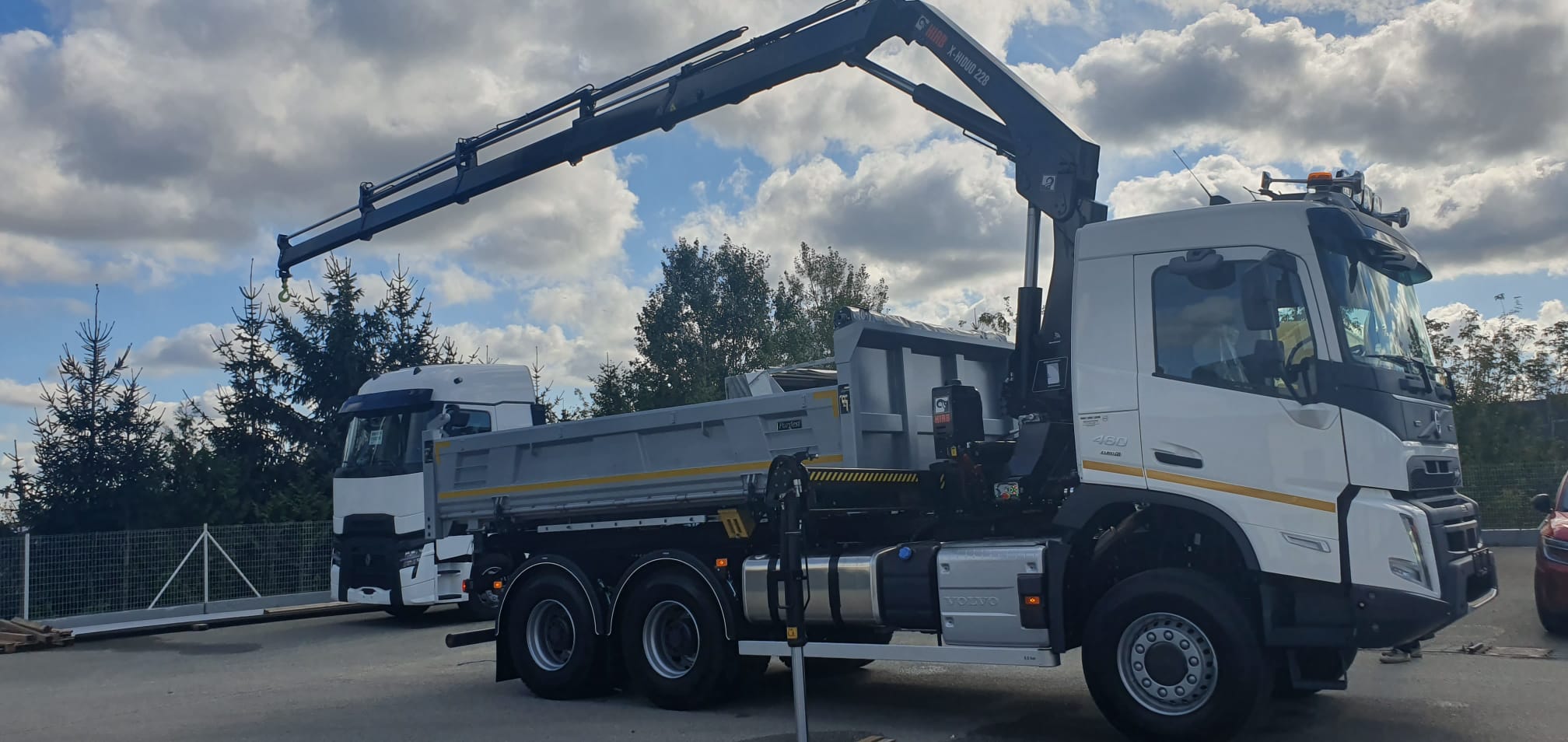 Volvo 6×6 nástavba 3S Porgest. HIAB X 188B4 s dálkovým ovládáním, automatické rozložení a složení jeřábu z a do přepravní polohy, VSL sledování stability jeřábu.